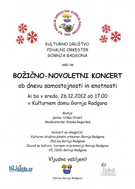 Božično-novoletni koncert ob Dnevu samostojnosti in enotnosti - 26. decembra 2012 v Kulturnem domu Gornja Radgona
