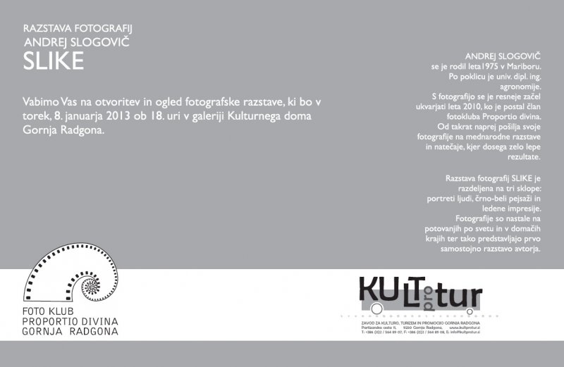 Otvoritev in ogled fotografske razstave: "Razstava fotografij: Andrej Slogovič" - 8. januarja 2013 v galeriji Doma kulture Gornja Radgona