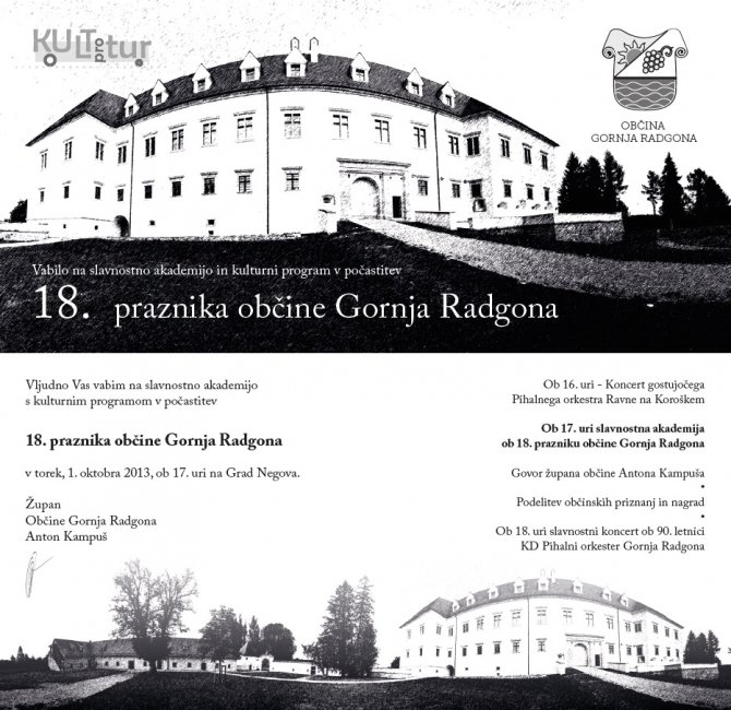 Slavnostna akademija s kulturnim programom v počastitev 18. praznika Občine Gornja Radgona, koncert Pihalnega orkestra Ravne na Koroškem in slavnostni koncert ob 90. letnici KD Pihalni orkester Gornja Radgona - 1. oktobra 2013 na Gradu Negova