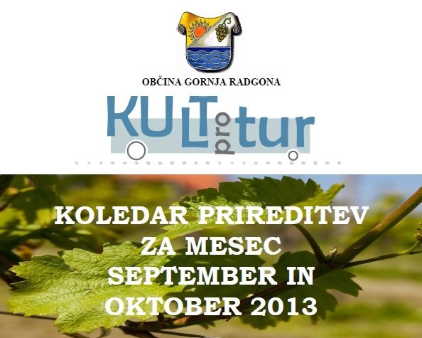 Prireditve, ki se bodo v mesecu septembru in oktobru 2013 odvijale v občini Gornja Radgona so razvidne iz priponke spodaj: