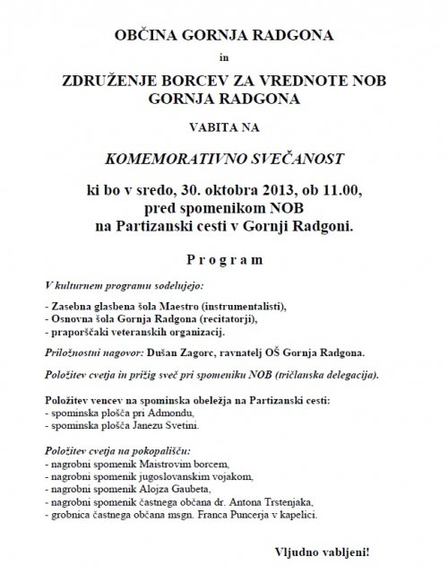 KOMEMORATIVNA SVEČANOST - 30. oktobra 2013 pred spomenikom NOB na Partizanski cesti v Gornji Radgoni