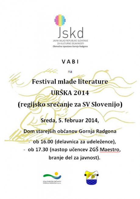 Festival mlade literature URŠKA (regijsko srečanje za SV Slovenijo) - se prestavlja na 19. februar 2014 v Domu starejših občanov Gornja Radgona