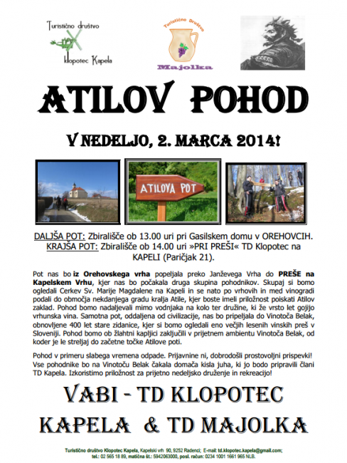 Atilov pohod - 2. marca 2014 z zbirališčem v Orehovcih