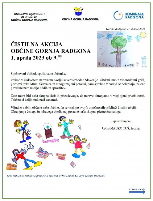 ČISTILNA AKCIJA Občine Gornja Radgona - 1. aprila 2023 v vseh KS - LETAK PDF