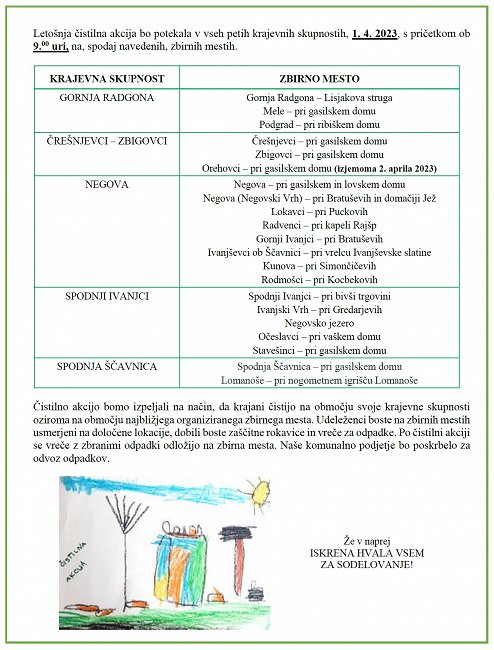 ČISTILNA AKCIJA Občine Gornja Radgona - 1. aprila 2023 v vseh KS