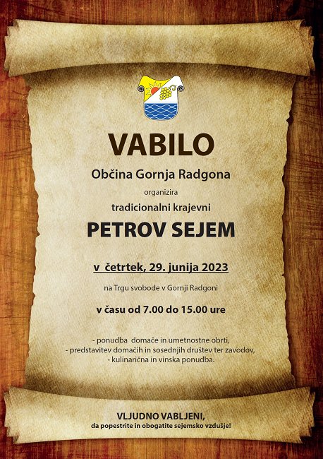 Občina Gornja Radgona, v četrtek, 29. junija organizira tradicionalni PETROV SEJEM.