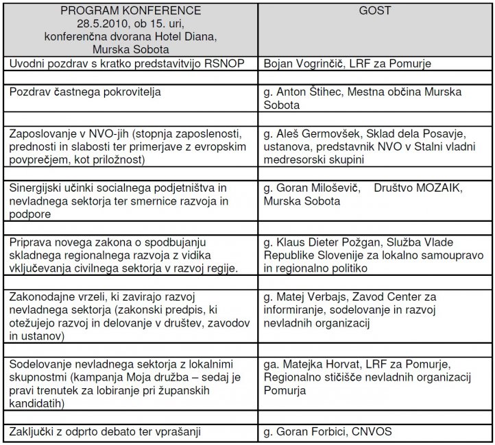 Senje nevladnih organizacij Pomurja 2010 in Konferenca nevladnega sektorja Pomurja - 28. in 29. maja 2010 v Murski Soboti