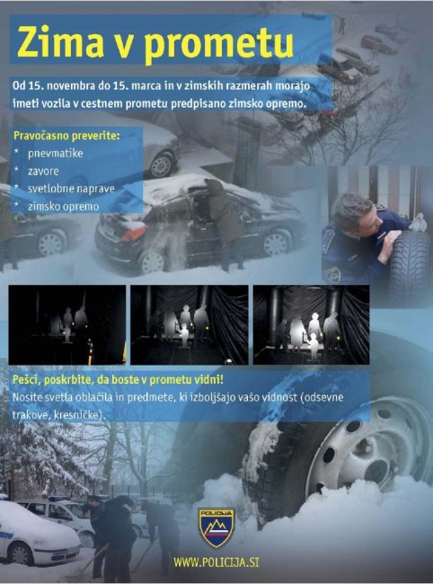 Zima v prometu - obvestilo o predpisani zimski opremi slovenskih cestah pozimi (med 15. novembrom in 15. marcem naslednjega leta) in v zimskih razmerah
