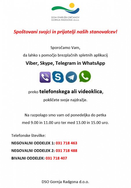 Svojci lahko pokličejo stanovalce na spodnje kontakte: