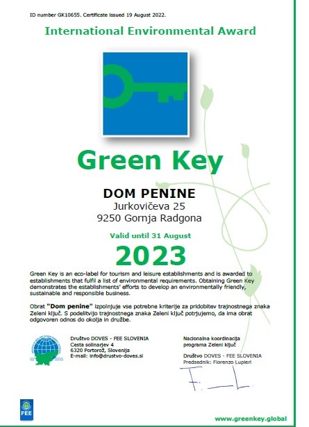 Okoljski znak ZELENI KLJUČ/GREEN KEY pridobili dve podjetji v Gornji Radgoni