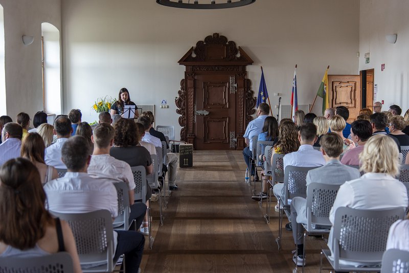 Sprejem je letos potekal v prostorih gradu Negova, kjer so učenci in učenke Osnovne šole dr. Antona Trstenjaka Negova pripravili lep spremljajoči program.